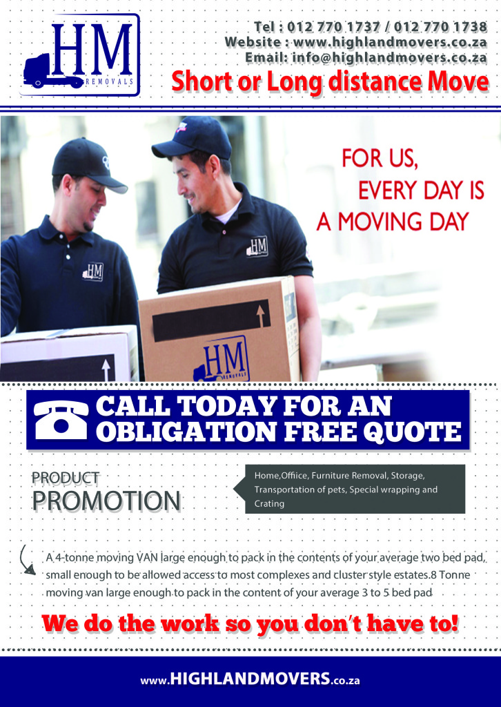 Highland Movers our representatives have been in the furniture moving industry for years. We are skilled at moving home and office furniture, sensitive equipment, computers, files, and product safely. As a facility manager or move coordinator, there may be a lot of pressure on you to make sure your move goes smoothly. HM office movers are experienced in and equipped to handle any type of office move. Whether your company is relocating, renovating, or just doing an internal move, our representatives can ease your stress with our solid planning process. Organization is key regardless of the size of your office move. Our labelling system has successfully guided office moves involving hundreds of employees. We work with your floor plan, enabling Highland Movers to get your staff right back to work. We travel to any destination in South Africa from Johannesburg, Pretoria,Limpopo, Durban, Cape Town,etc.