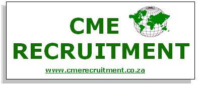 CME Recruitment specialises in professional placement of both technical and corporate staff in permanent as well as temporary positions in the following sectors:• Management, Engineering, Technical & Artisan Positions• General Office Administration • Production & Manufacturing • Sales & Marketing• Accounting & Finance• Information Technology (IT)Our Mission:Our mission is to place high quality candidates into stable positions within strong companies resulting in the development & growth of both the company and the successful candidate.Contact Details:Tel: 021-556 2929Fax: 086 671 4227Email: [email protected]: www.cmerecruitment.co.za